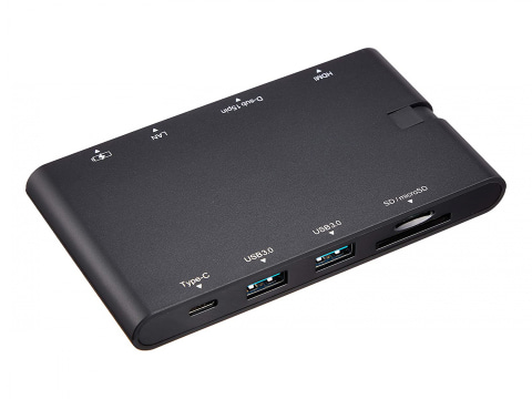 USB 3.0 Type-C (전원 입력 겸용 USB PD 60W까지 공급 가능) × 1 ● USB 3.0 × 3 ● HDMI (최대 4K / 30Hz) × 1 ● 미니 D-Sub15 핀 ( 최대 풀 HD / 60Hz) × 1 ● Gigabit Ethernet × 1 ● 헤드폰 / 마이크 출력 × 1 ● SD 카드 슬롯 × 1 ● microSD 슬롯 × 1 ● 크기 : 55 × 160 × 18mm ● 무게 : 104g