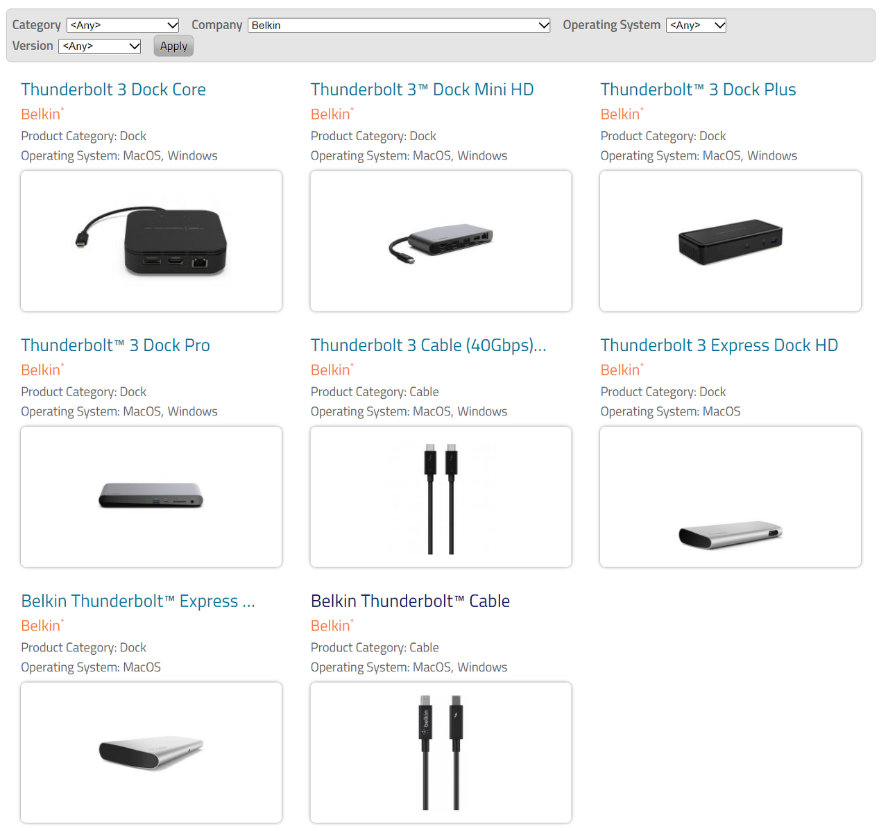 참고로 악세서리로 유명한 Belkin사 Intel 인증 썬더볼트 악세서리를 모두 확인 해 보면,