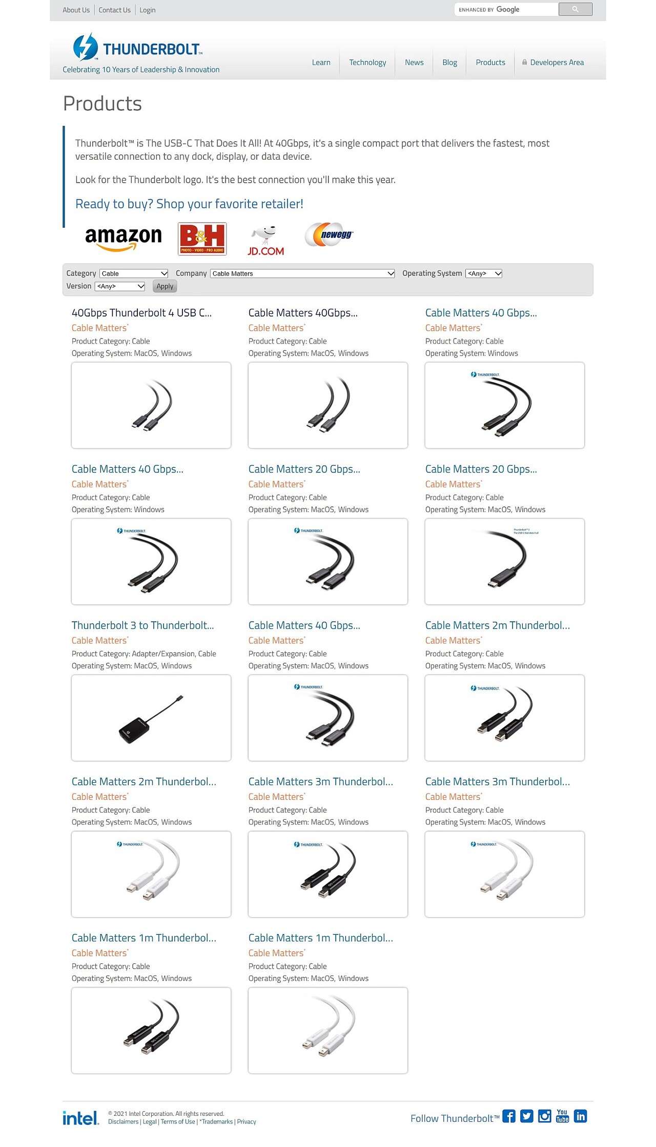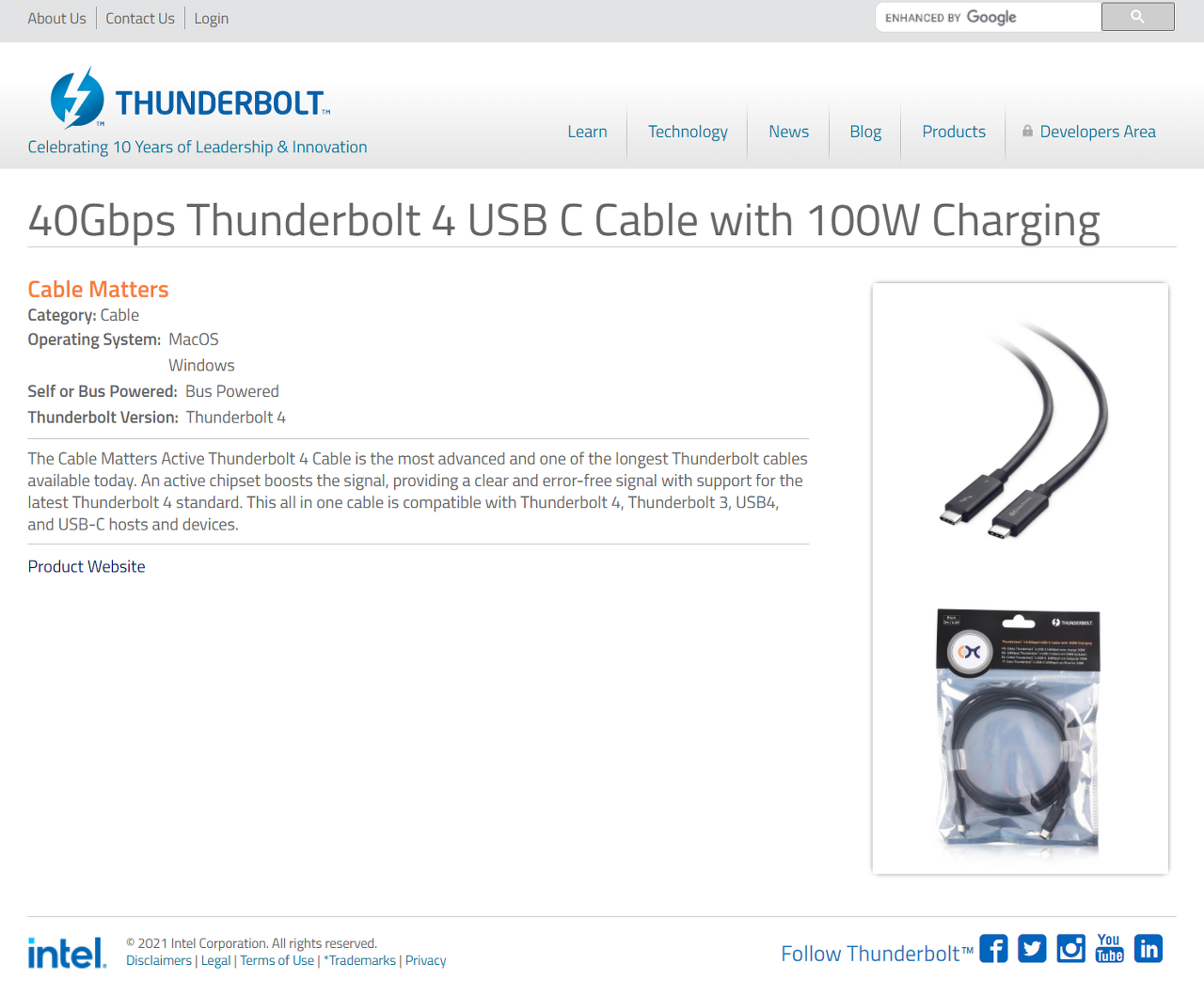 Intel 인증 썬더볼트 케이블 제품 목록을 확인 할 수 있습니다.