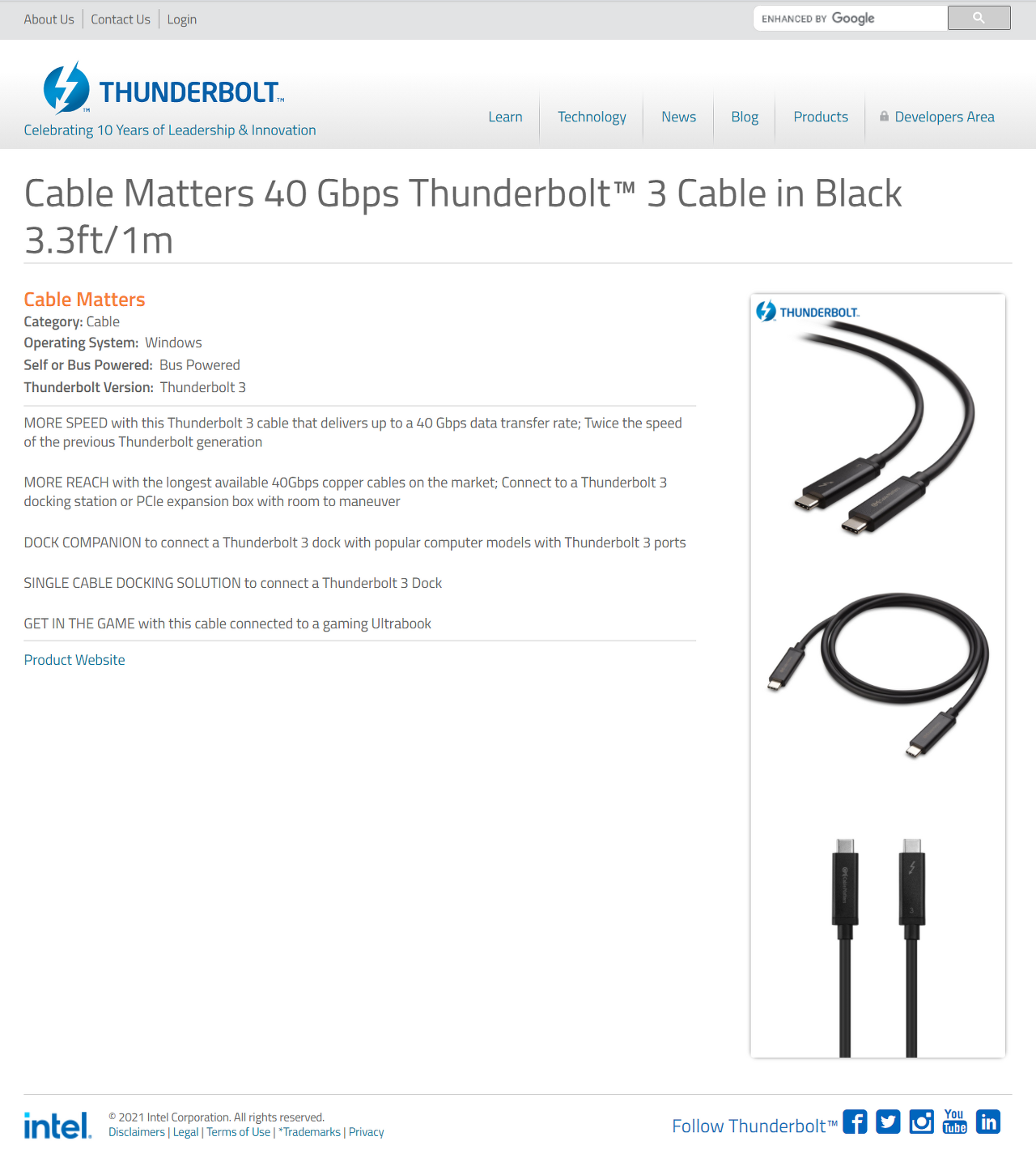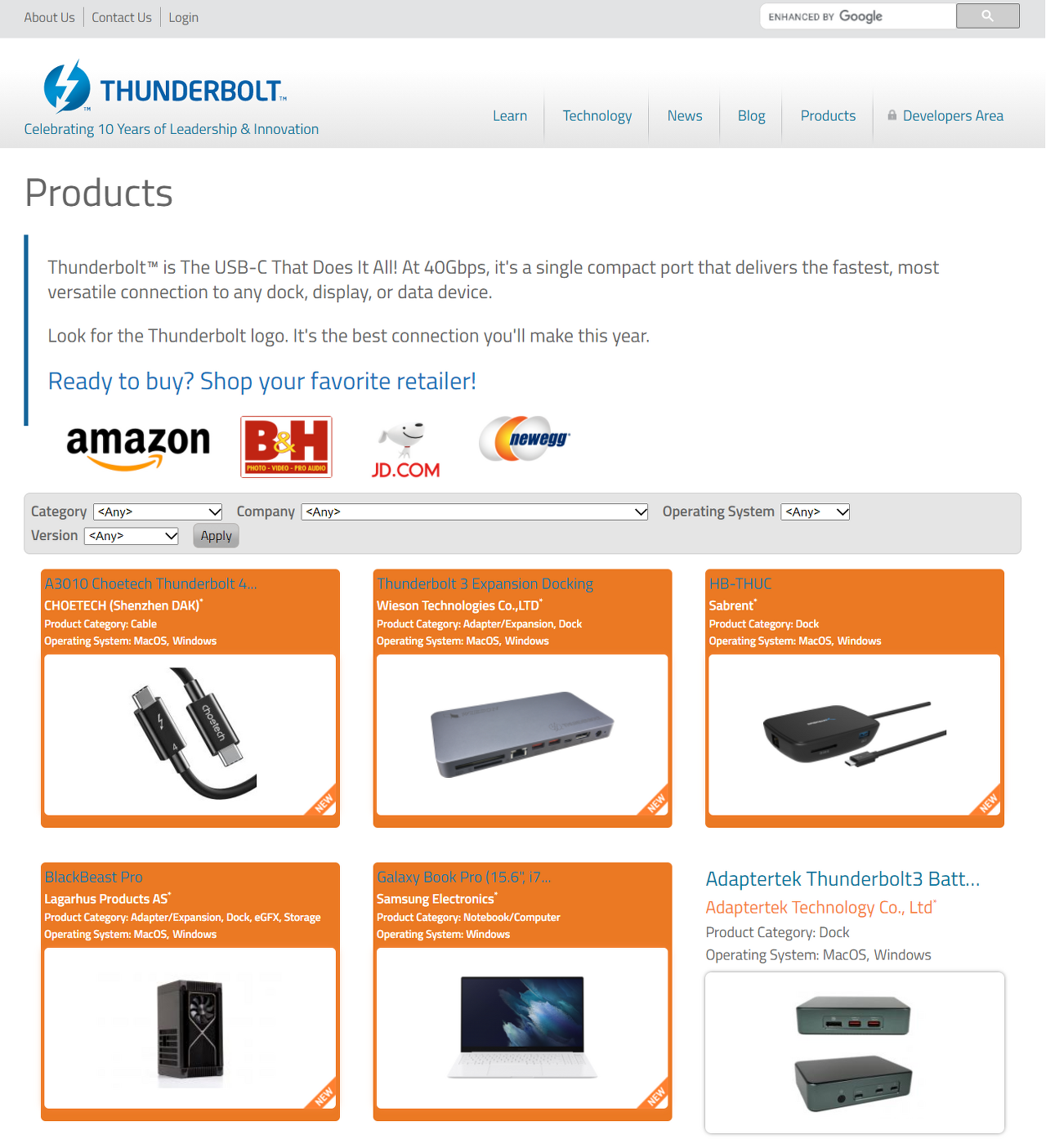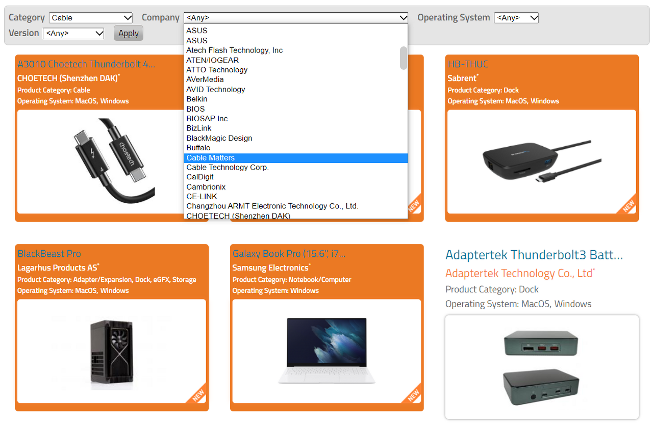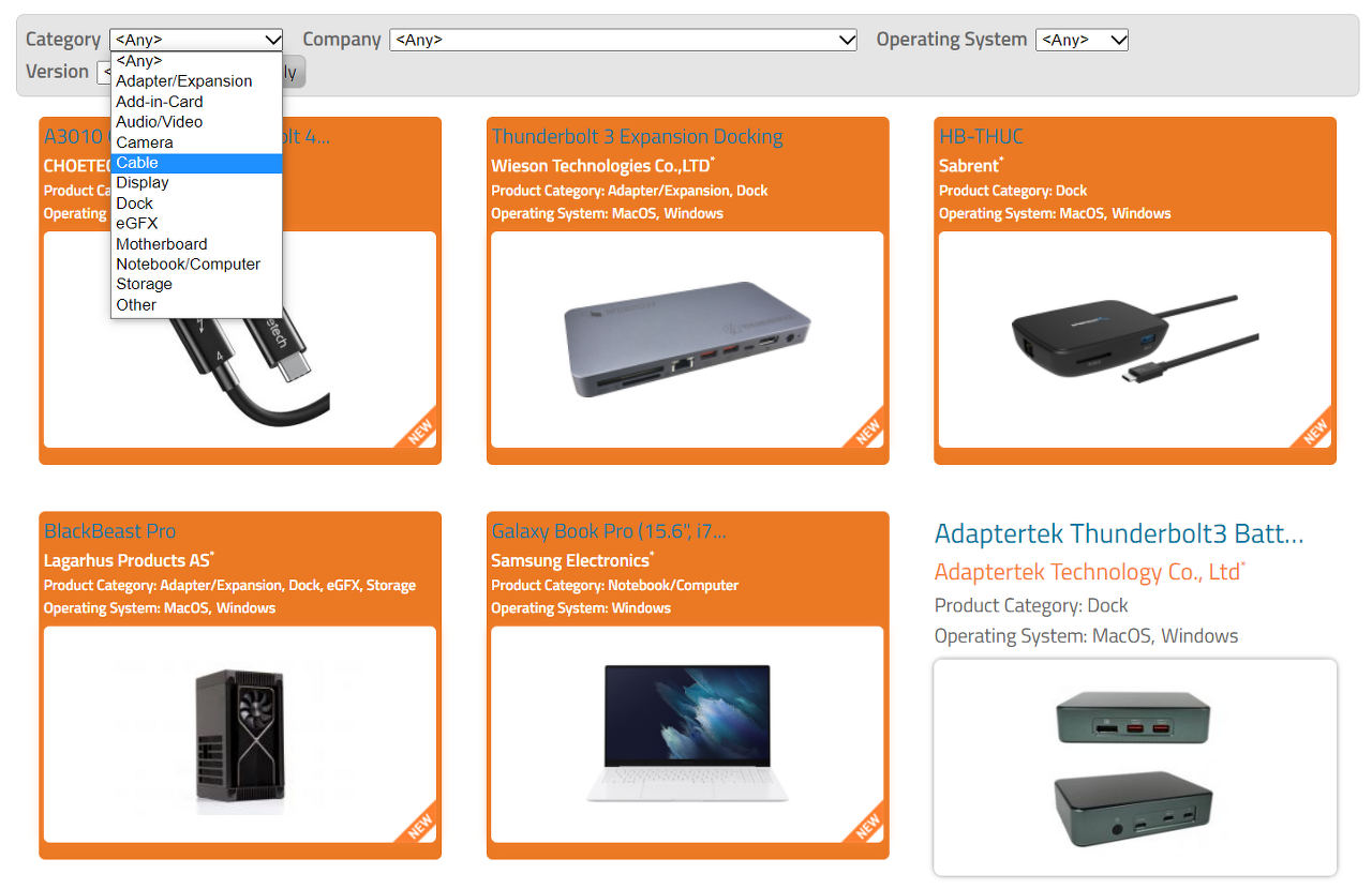 Intel 썬더볼트(Thunderbolt / TB) 제품인증 사이트 :