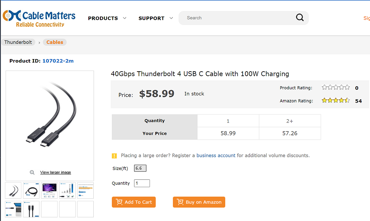 Thunderbolt 4 케이블은 비싸고, 시장에서는 때때로 케이블들을 찾기가 어려울 수 있다.