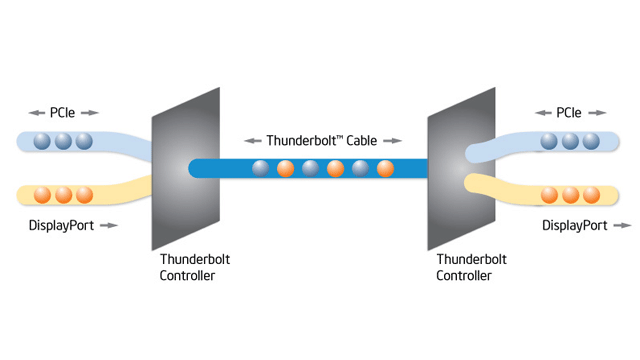 썬더볼트 케이블로 연결되는 본체 (노트북, PC) 내에는