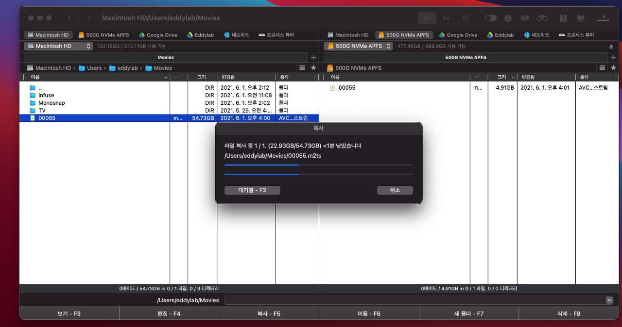 다시 TB3 40G NVMe에 복사를 해서 올리는 시간은