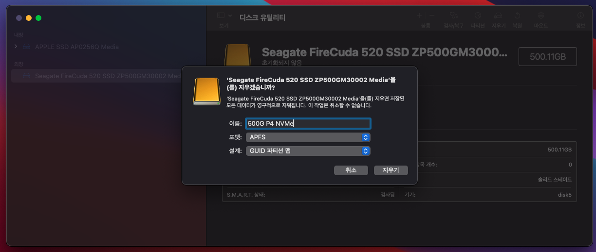 TB3 NVMe 40G 케이스 + PCle4 NVMe FireCuda520 (500G)를