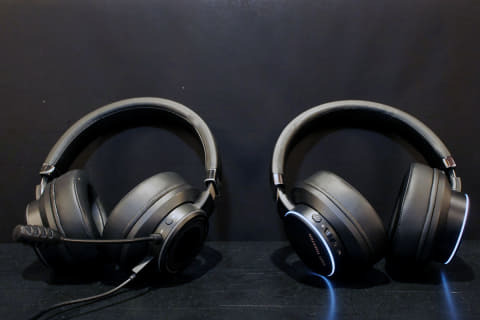 SXFI THEATER(왼쪽)과 SXFI GAMER(오른쪽). 헤드폰 부분은 거의 동일한 무선형과 USB접속 타입이라는 차이가 있는 형제 모델이다