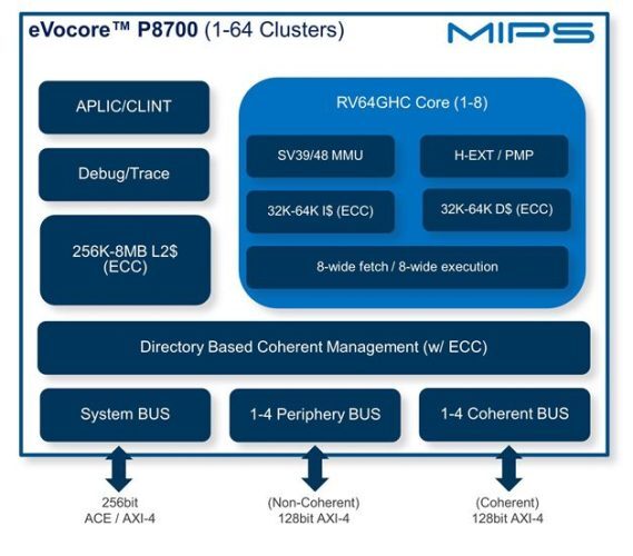 이 회사는 또한 올해 eVocore I8500 프로세서 시스템을 출시했는데, MIPS는 이 시스템이 "클래스 최고의 성능 효율성"을 제공하도록 설계되었다고 말합니다.이 설계는 최대 64개의 클러스터, 512개의 코어 및 2048개의 스레드에 사용할 수 있습니다.그러나 I8500 디자인이 라이선스를 받을 수 있을지는 아직 불분명합니다.