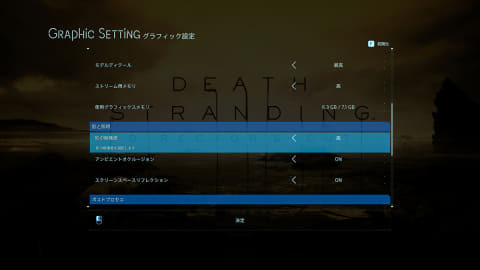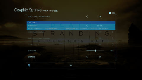"DEATH STRANDING DC"의 그래픽 설정 화면 4.DLSS는 "품질"로 있다.다소 영상이 파라 대해서"퍼포먼스"쪽이 플레이는 쾌적하다