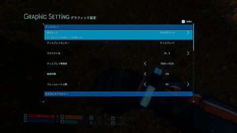 "DEATH STRANDING DC"의 그래픽 설정 화면.해상도는 7,680×4,320으로 프레임 레이트는 60(fps)라고 하고 있다