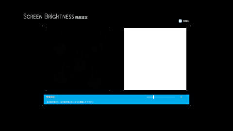 "휘도 설정"화면.지시대로 그림 속에 있는 무늬가 보이도록 조정한다.곧 조정을 하지 않고 화면의 밝기/어둠에 눈이 익숙해진 조정을 하도록 한다.그림은 조금 무서워