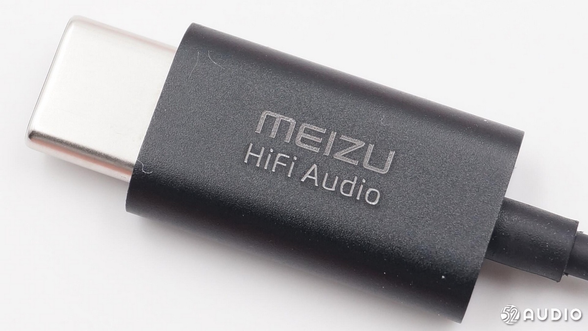 USB-C 플러그의 한 쪽 끝은 MEIZU의 로고 및 HiFi 오디오 하이파이 오디오의 로고입니다.