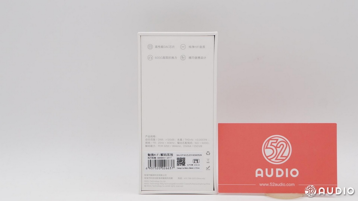 패키지의 외관은 흰색이고 제품의 앞면은 시각적으로 보입니다 다음은 Meizu HiFi 디코딩 앰프의 이름입니다.