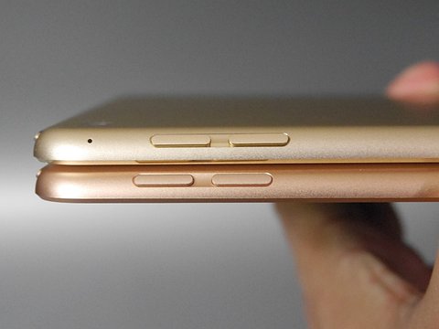 볼륨 버튼의 위치를 iPad mini 4 (위)과 비교하면 제품 (아래) 쪽이 약간 끝에 모여있다. 차이는 실측 약 3mm라고했는데