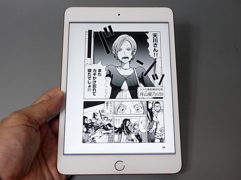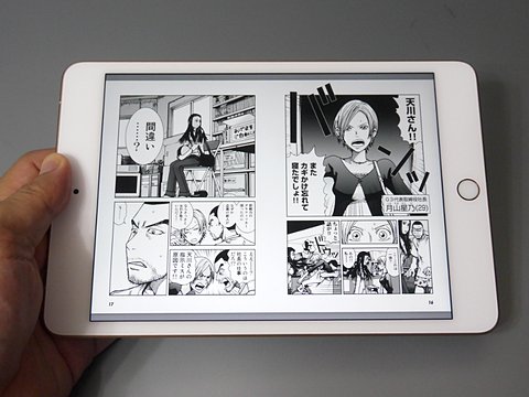 한편 일반 독서, 즉 몇 초 간격을두고하면서 페이지를 넘기는 작업 만한다면, iPad mini 4의 차이는 느끼지 않는다. 이 만화는 물론, 텍스트에서도 마찬가지다. 전자 책 열람 자체가 원래 그렇게 무거운 작업이 아니기 때문에 이것은 당연하다면 당연 할 것이다.