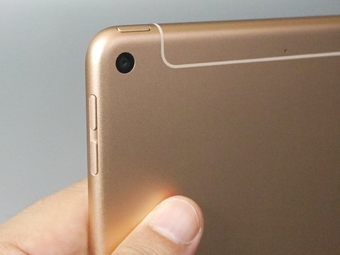 정면에서 본 모양이 기존의 iPad mini 4 변하지 않는 것은 앞서 말한대로이지만, 측면의 볼륨 버튼과 카메라의 위치가 약간 이동하고 있으며, 케이스 류의 유용은 어려운 것으로 보인다.