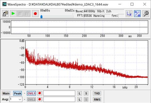 바로이 환경에서 시험해 보았는데, DAC의 헤드폰 단자에서 확실히 소리가 나오고 있는데, 그 디지털 출력을 Roland의 UA-101에서 받아 보았는데, 디지털 Lock이 걸리지 않고, 소리를 캡처 수 없다. 운동에 LDAC 대신 SBC 혹은 apt 자 X에 연결하면, 이쪽은 잘 잠그고 소리를 낼 수있다. 혹시 보호되어 있는지?도 생각했지만 보호와는 조금 다른 행동 인 것이다. 운동에 44.1kHz가 아닌 48kHz, 88.2kHz, 96kHz와 US-101의 샘플링 속도를 올리면, 96kHz 락이 걸려 소리가 PC로 도착했다. 하지만 Xperia 재생하는 것은 44.1kHz / 16bit의 WAV 파일. 아무래도 Xperia에서 96kHz로 업 컨버트 된에 LDAC에서 전송되는 것 같다. 또한, Xperia에 탑재되어있는 "고해상도 상당"로 변환 기능 'DSEE HX "는 꺼진 상태에서 테스트하고있다.