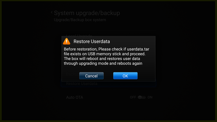 "OK"를 누르면, U5Mini셋탑은 전원이 꺼졌다가 다시 켜지면서