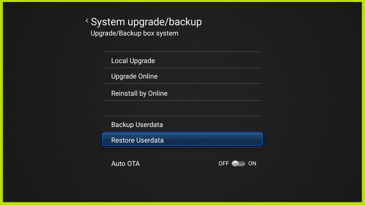 시스템 업데이트(System update) >> 복구 사용자 데이터(Restore Userdata)