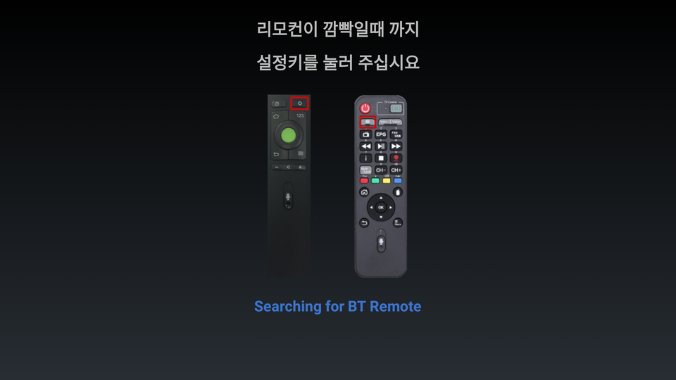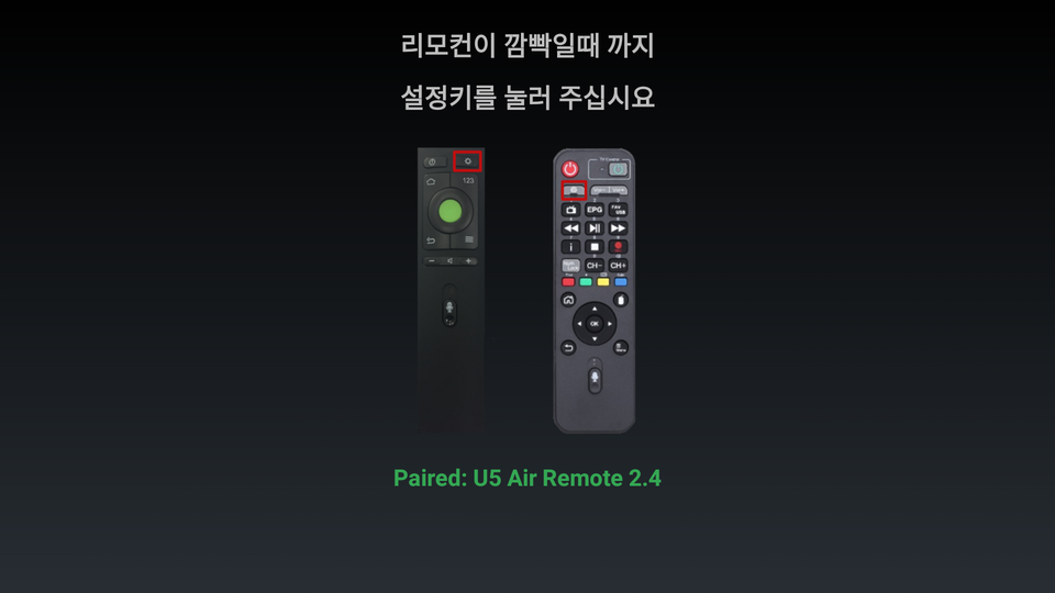 2. 그후에 천천히 리모콘의 설정(톱니바퀴) 버튼을 3초 이상 지속적(롱키)으로 눌러 주시면,