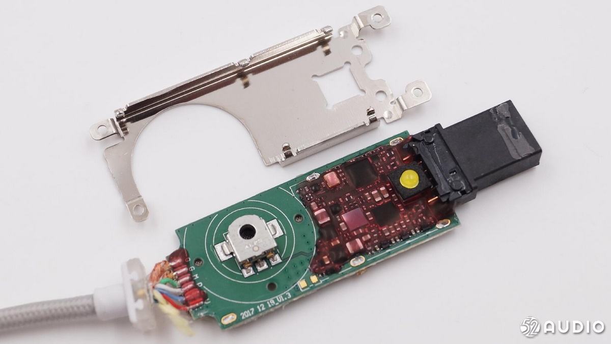 나사를 풀고 마더 보드를 제거합니다 (알루미늄 합금 케이스) USB-C 케이블의 오른쪽에있는 구멍을 볼 수 있습니다. 볼륨 노브를 왼쪽으로 돌리고 3.5mm 오디오 소켓을 왼쪽으로 돌립니다.