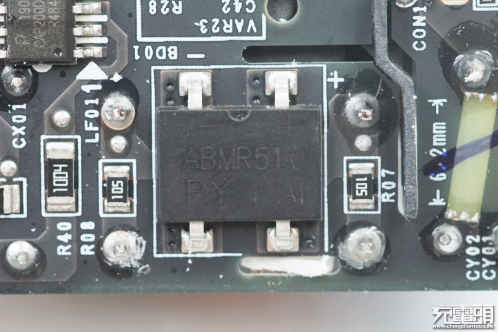 2 개의 출력 필터 솔리드 커패시터, 사양은 날씬한 폼 팩터에서 300μF 30V입니다. 20V 가능 충전기 내에서 30V 정격 솔리드 커패시터를 사용하는 것은 이번이 처음입니다 (대부분 25V 솔리드 커패시터 사용).
