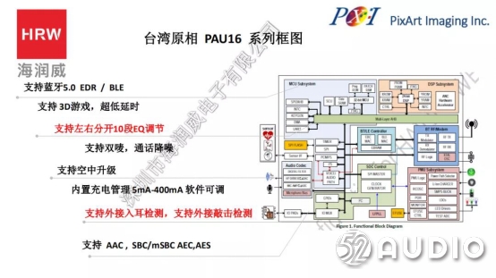 내장 Tensilica HiFi EP 프로세서, 내장 16Mb 플래시 메모리, iOS 및 Android APP, 내장 정전 용량 터치 컨트롤러, 통합 리튬 배터리 충전 컨트롤러를 지원합니다. 오디오 디코더는 24 비트 96KHz 샘플링 레이트 디코딩을 지원하고 다단계 EQ 조정으로 노이즈 감소 및 에코 제거를 지원합니다. 무선 연결과 관련하여 패킷 손실 보상 기술, 차세대 TWS 진정한 무선 기술 및 AiroThru 주변 소음 모니터링 기술을 지원합니다. Bluetooth 오디오에서는 Bluetooth 5.0 이중 모드를 지원하며 A2DP, HFP, AVRCP, SPP 및 기타 기능을 지원하는 Bluetooth 저에너지 모드를 지원합니다.