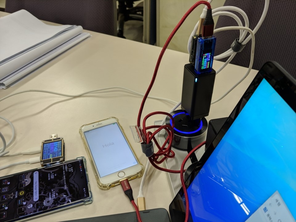 이제 Baseus 65W 2C1A의 멀티 포트 동시 충전 test입니다.