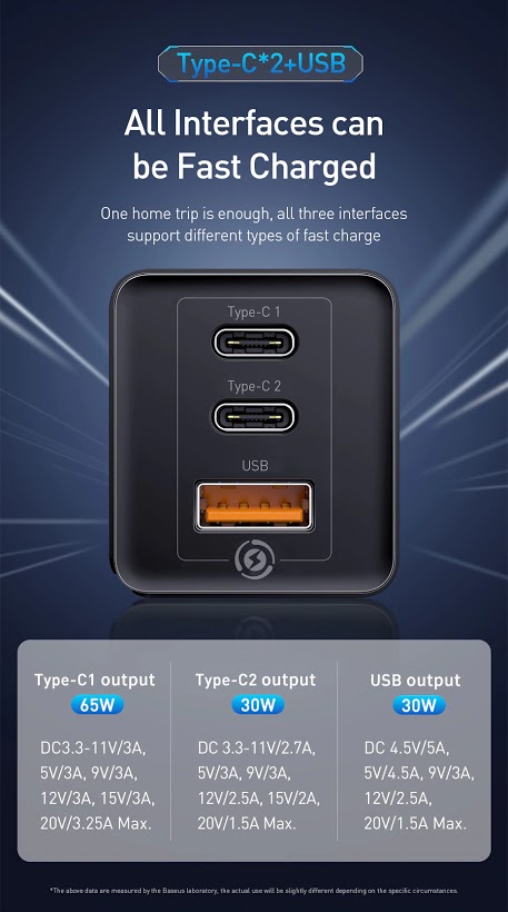 Baseus 65W 2C1A 멀티 포트 GaN 충전기 test