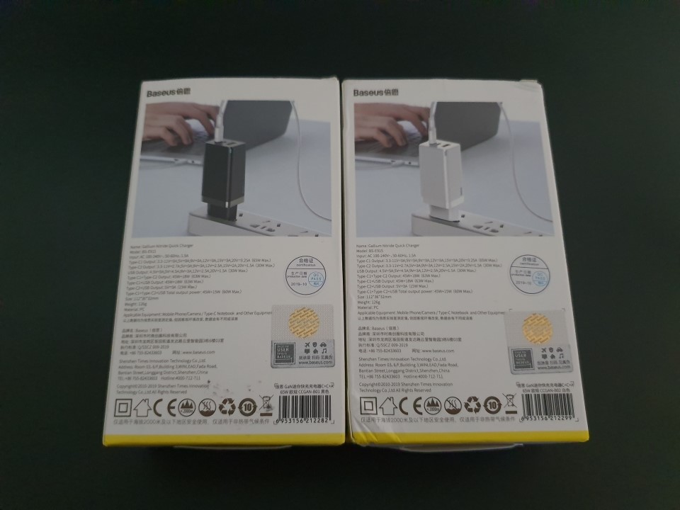 Baseus 65W 2C1A와 GaN 65W 1C 제품 비교입니다.