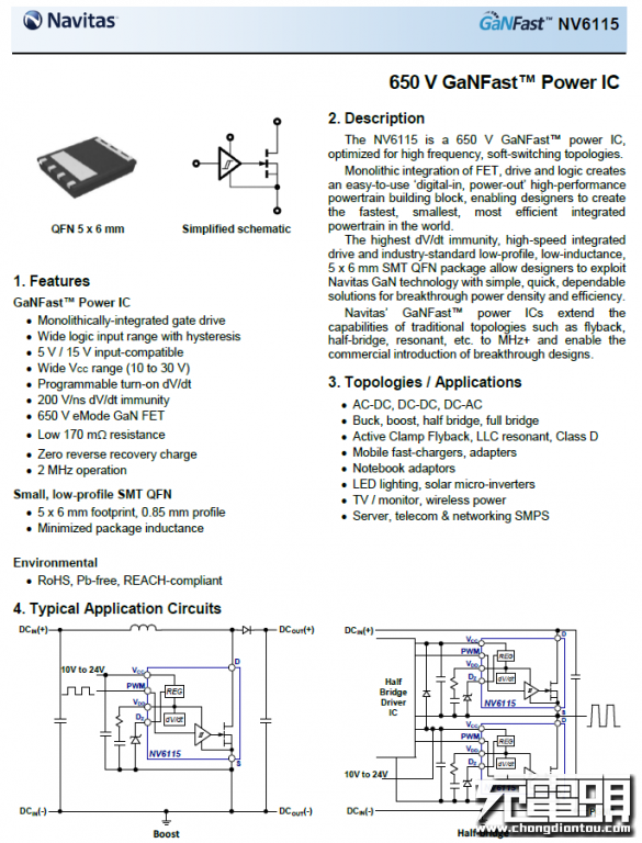 GaN 칩셋 : Navitas Semiconductor의 NV6115 GaN 전원 IC 적용