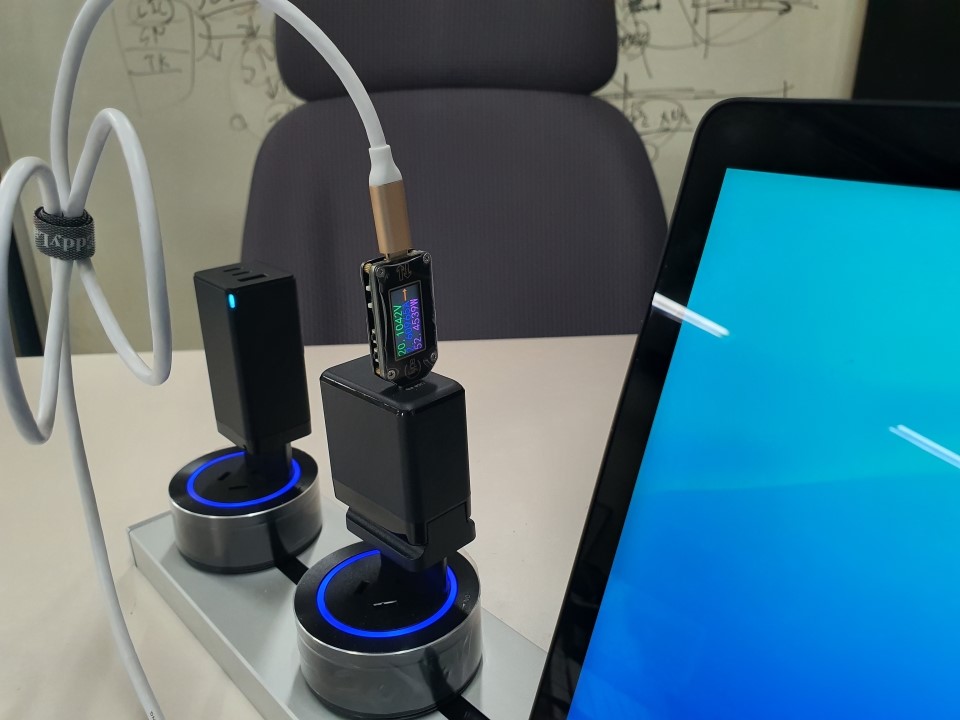 모든 포트가 사용되면 USB-C2 및 USB-A는 5V로 잠기는 반면 USB-C1은 여전히 최대 45W PDO 또는 48W PPS를 출력 할 수 있습니다.