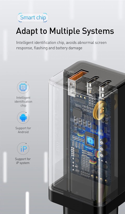 Baseus 65W 2C1A은 65W충전기로서, 2C1A 멀티포트를 지원하므로서