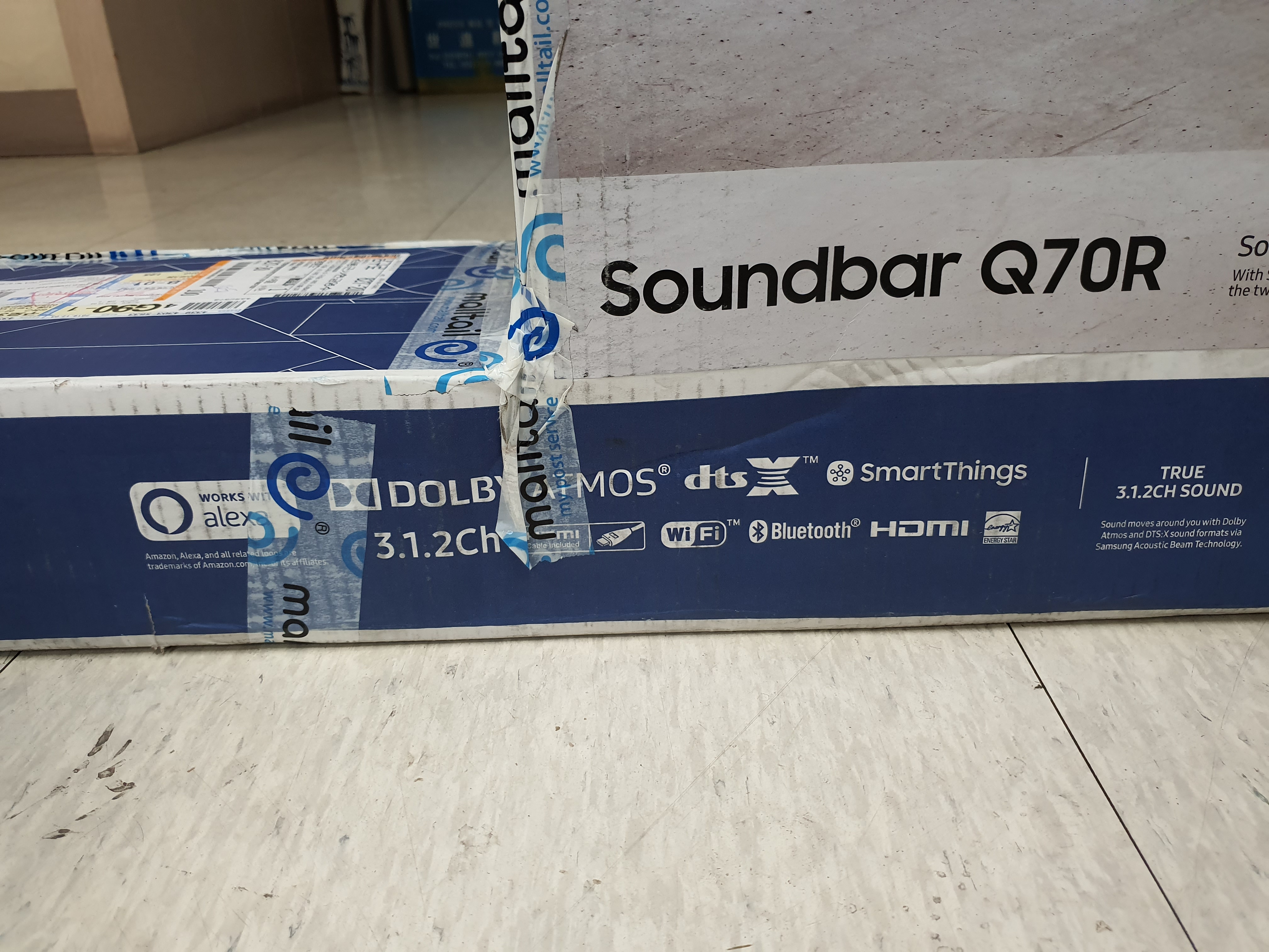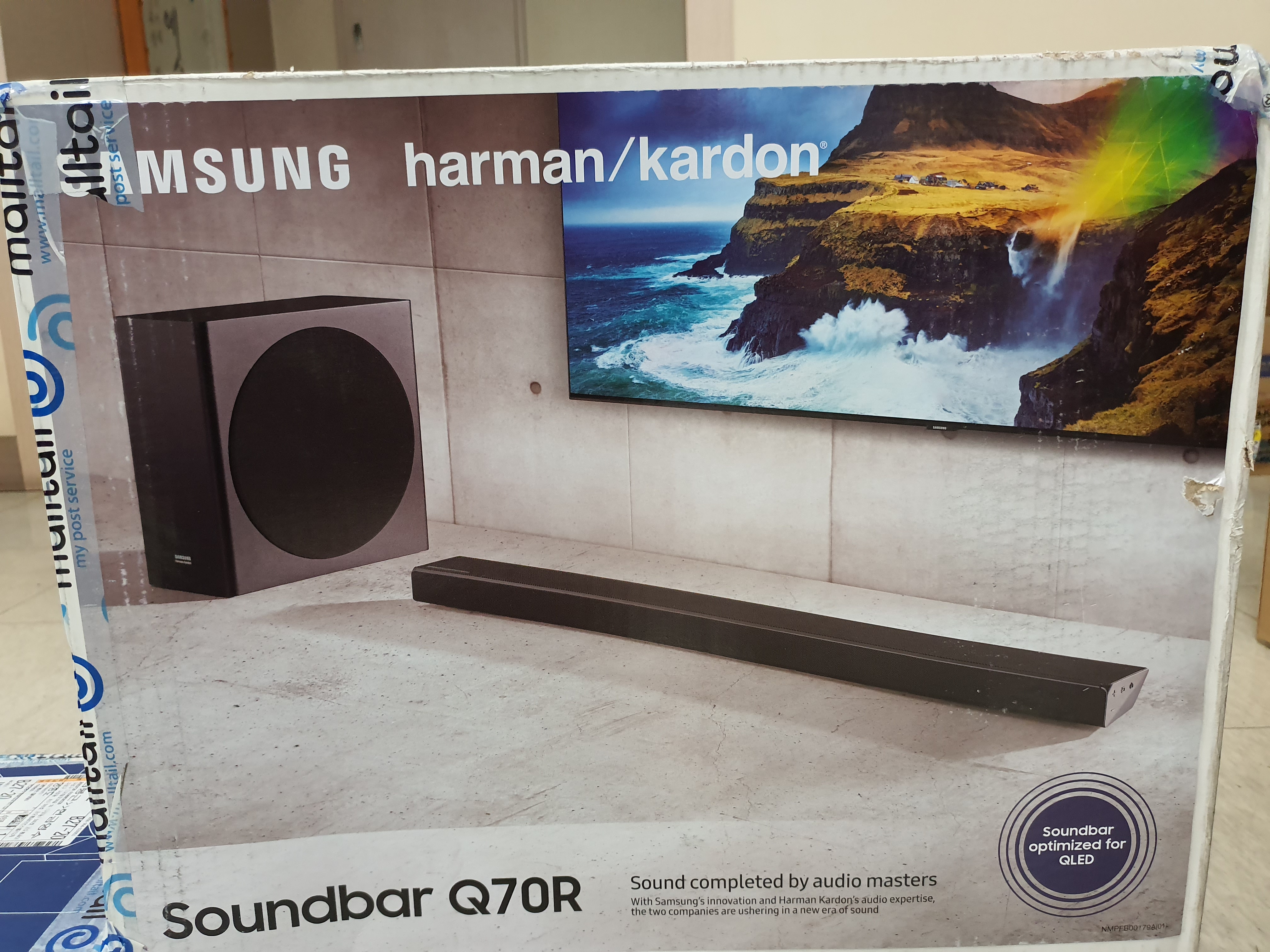 Q70R 사운드바는 4K UHDTV 전면에 위치 시켜 보았습니다.