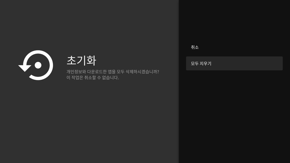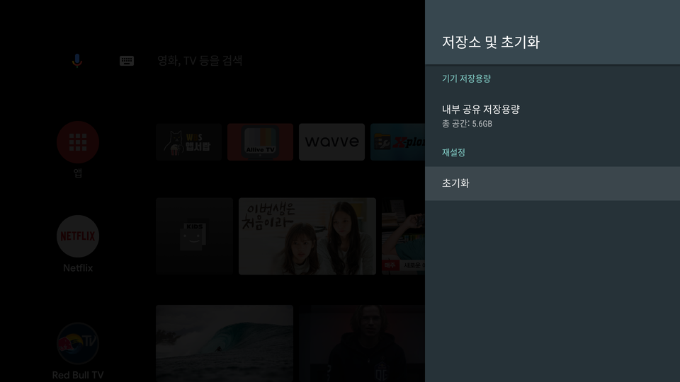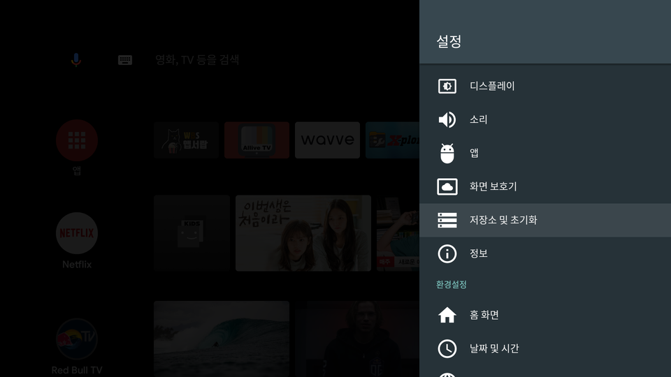3. 설정 >> 저장소 및 초기화 >> 초기화