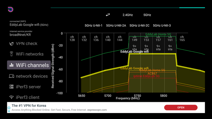 MiBox3 셋탑 근처에서 WiFi 5G 속도 test를 해 보시기 바라겠습니다.