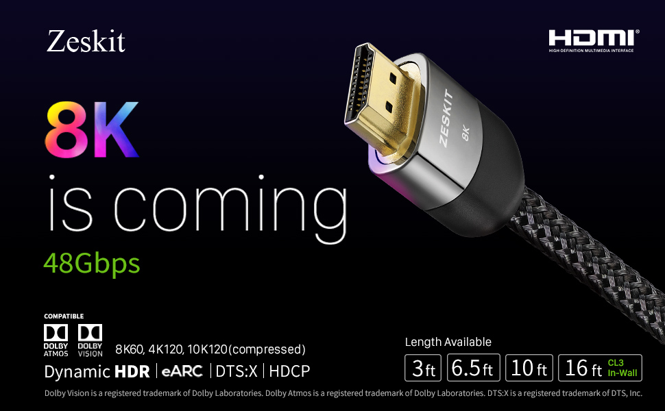 Zeskit HDMI 2.1 케이블은 48Gbps 대역폭을 지원하며 역호환성이며 기존의 HDMI 장치 설치 기반과 함께 사용할 수 있다.