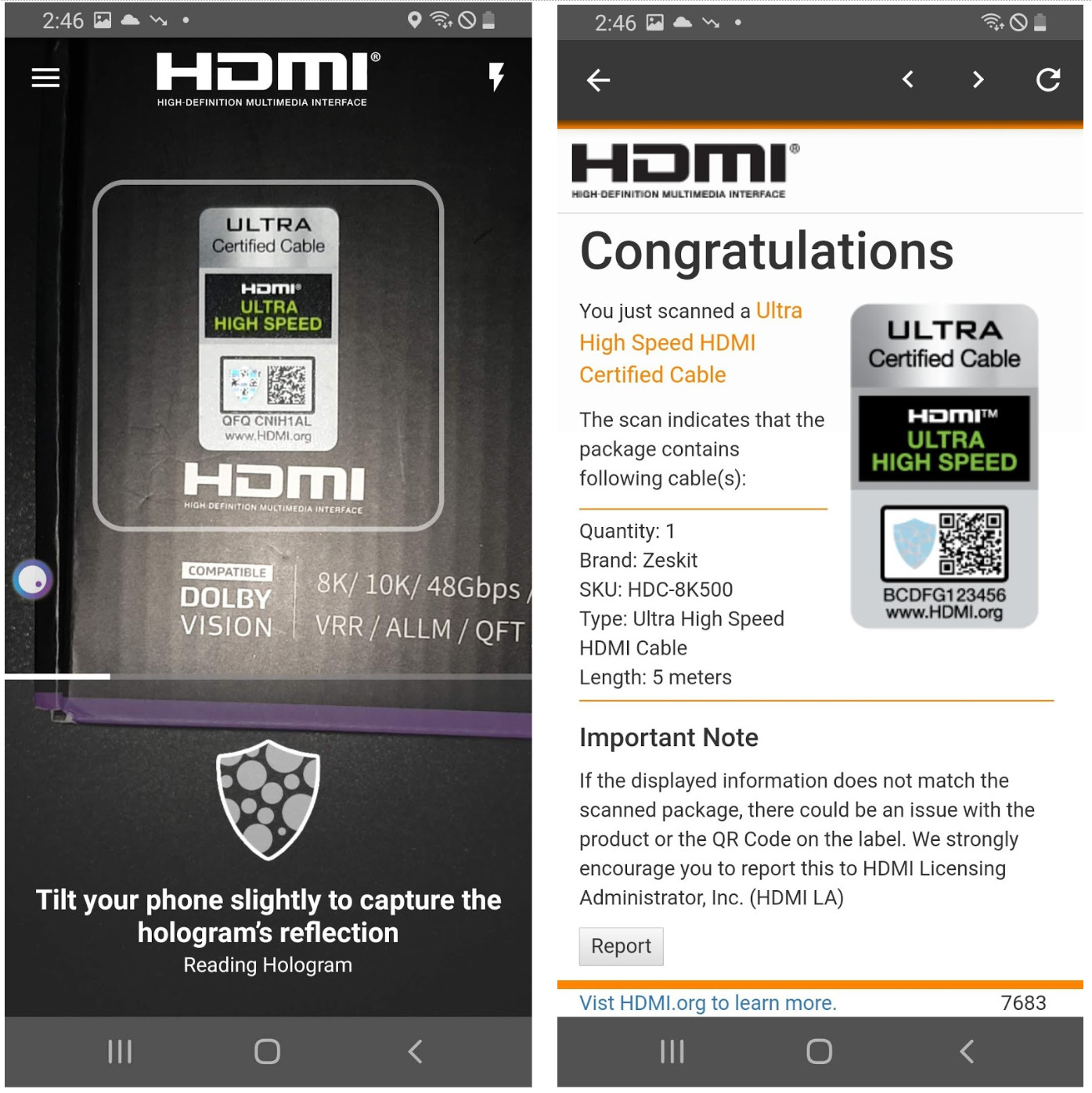 그래도 혹시, Zeskit HDMI인증 자체를 확인 해 보고자