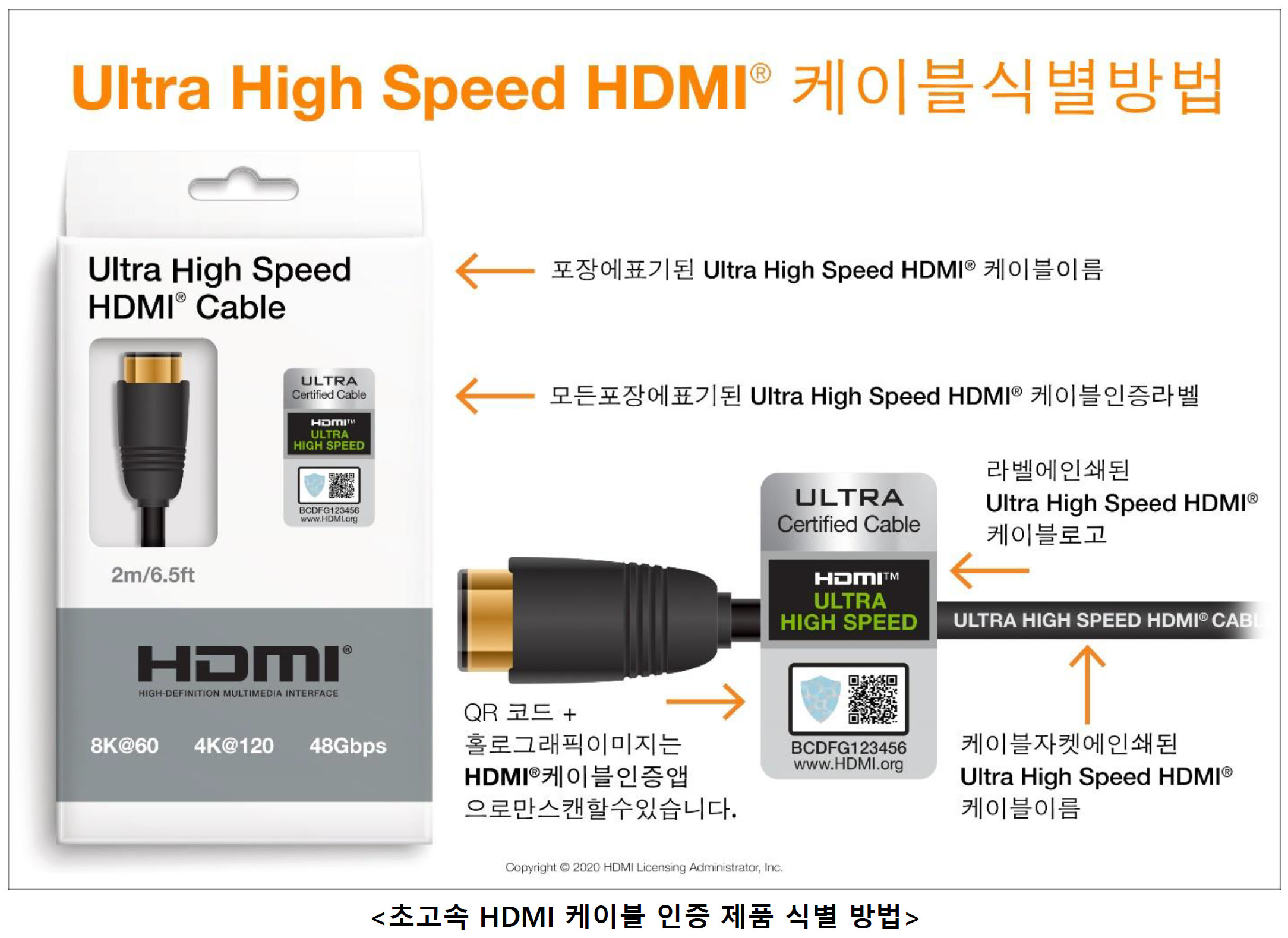 이 케이블은 압축되지 않은 8K 비디오와 HDR을 포함한 고대역폭 종속 기능이 전달되도록 보장하고 48Gbps 대역폭을 지원한다.