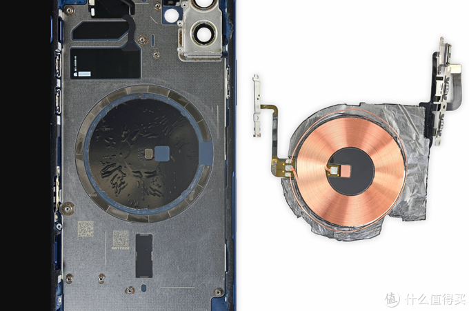 하단 : iPhone12 후면 케이스의 자석 및 충전 수신기 분해도