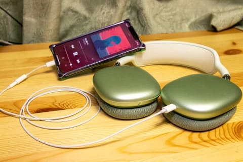 AirPods Max는 Apple 순정 Lightning - 3.5mm 오디오 케이블을 이용하면 유선 연결이 가능하지만,이 케이블은 "아날로그에서 디지털로의 데이터 변환이 행해지 기 때문에 완전한 무손실 재생이되지 않는다"고 말했다.