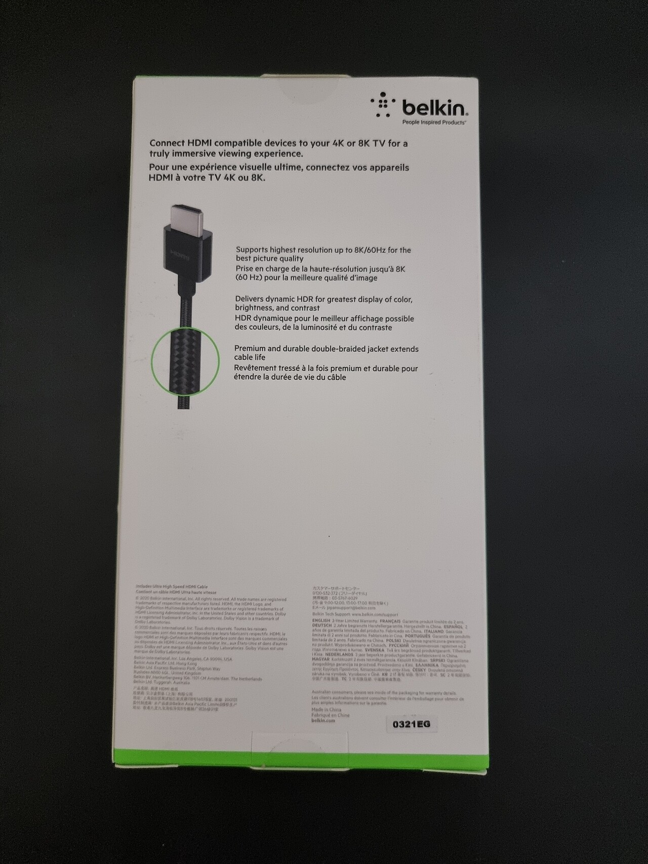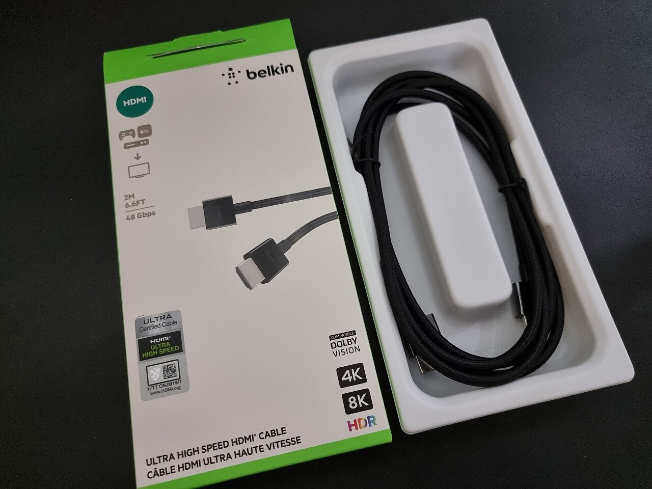 7만원 가격의 2M 벨킨 HDMI2.1 인증 케이블 박스 치고는 단조롭네요 ㅎㅎㅎ