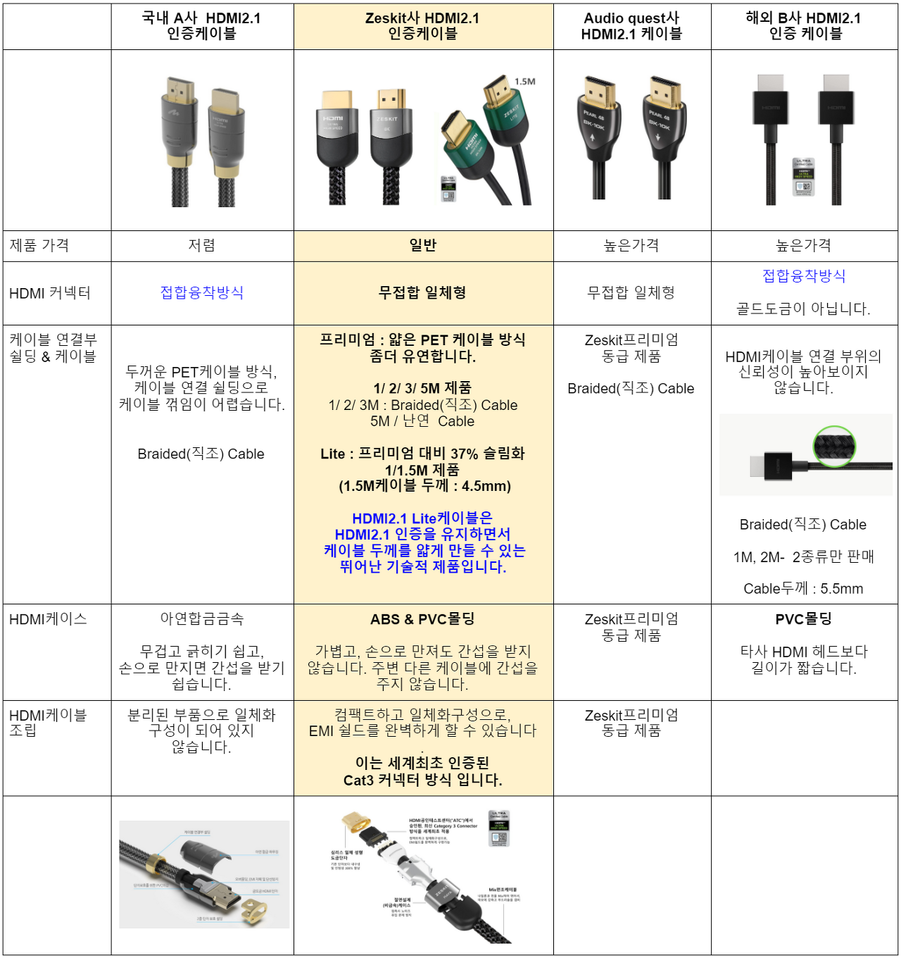 하기 Zeskit HDMI2.1 Lite 인증 케이블 출시 후,