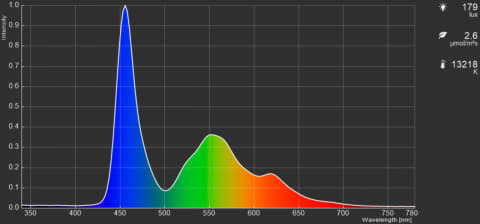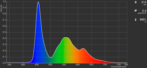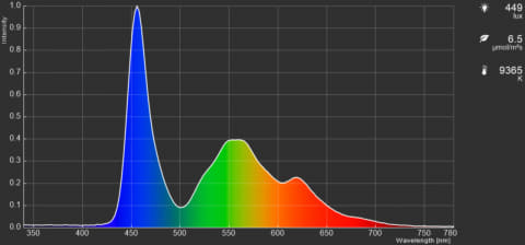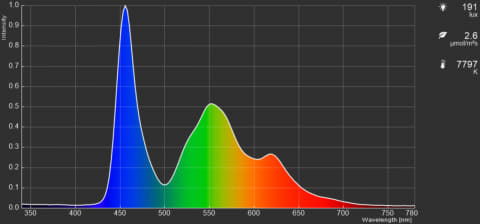 백색광의 컬러 스펙트럼을 보는 한 백색 서브 픽셀의 힘 배분이 강하고,보고 난 이전의 유기 EL 패널의 것과 바뀐 보람하지 않는다. LG 식 유기 EL 패널은 발광체로는 청색 단색이므로 청색 스펙트럼의 피크가 날카 롭고 높은 녹색과 적색은 다소 둔해 피크 인 것이다.