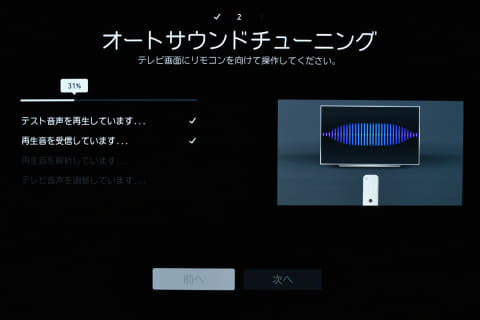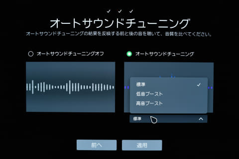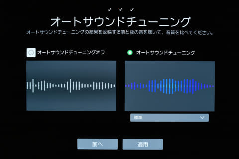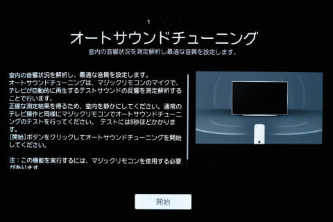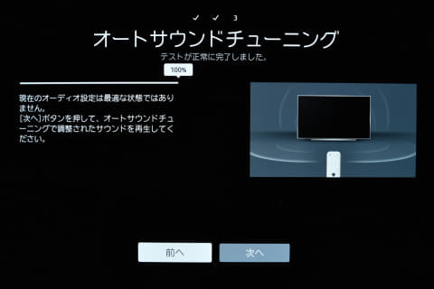 본 제품에는 가상 음원 기술 등을 구사 한 "AI 사운드 프로 '모드가 탑재되어있다. 실제 설치 환경에서 최적의 음 재생을 행하기 위해서는 "옵션 설정"- "AI 서비스"- "자동 음향 튜닝"메뉴에서 간이적인 교정을 수행 할 필요가있다.