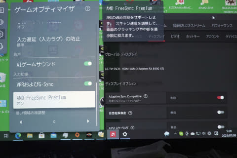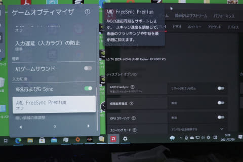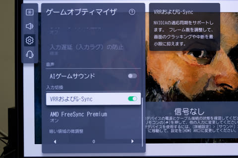 이번에 필자가 해본 느낌은 "VRR 및 G-Sync", "AMD FreeSync Premium"모두를 선택하여두면, NVIDIA 계열, AMD 계열의 쌍방에서 각각의 "가변 프레임 레이트 표시 최적화" 이 활성화되어 있었다. 또한, 본 기기에서 사용할 수있는 G-Sync는 "G-Sync Compatible"모드로된다.