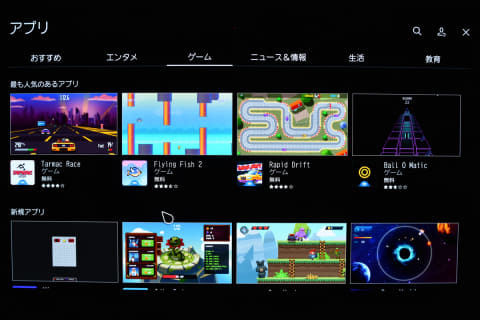 LG가 제공하는 LG TV 용 앱 스토어 화면. 어떤 게임도 평균 스마호게무 수준 이하의 솜씨이지만 라인업 자체는 충실