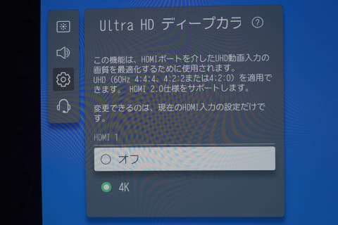 상단의 설정 스위치는 "게임 최적화"기능을 일괄 ON / OFF를 행하는 것이다. 이 ON / OFF 설정은 HDMI 입력 계통마다 기억되는 점에 유의하고 싶다.