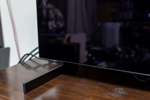 최근 평판 TV는 중앙 측에 장착 된 스탠드에 태울 수 있다면, TV 대의 상면에서 불거져도 설치가 가능한 제품이 많지만 본 제품은 거의 거의 화면 크기의 TV 대가 필요하다.