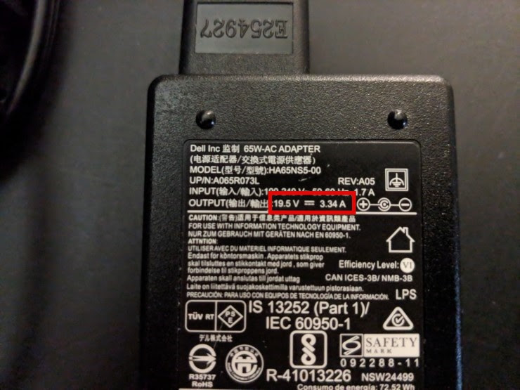 19.5V / 3.34A 기준으로 Voltage 정보 19.5V가 맞는 것을 확인하였습니다.