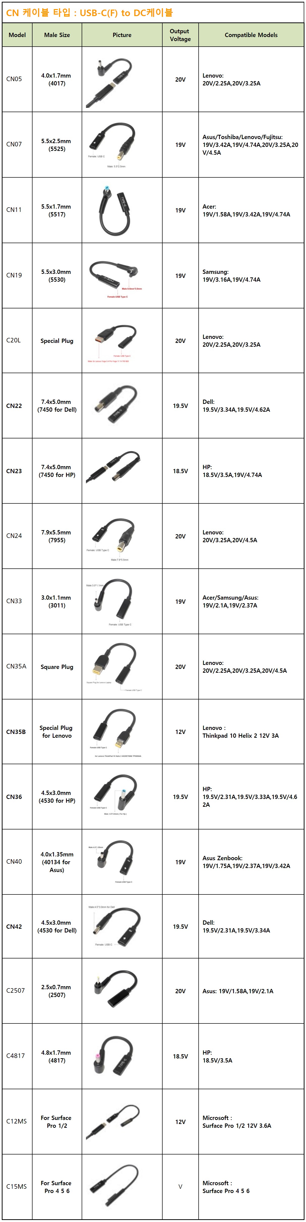 | CN 케이블타입 : USB-C(F) to DC 케이블 |