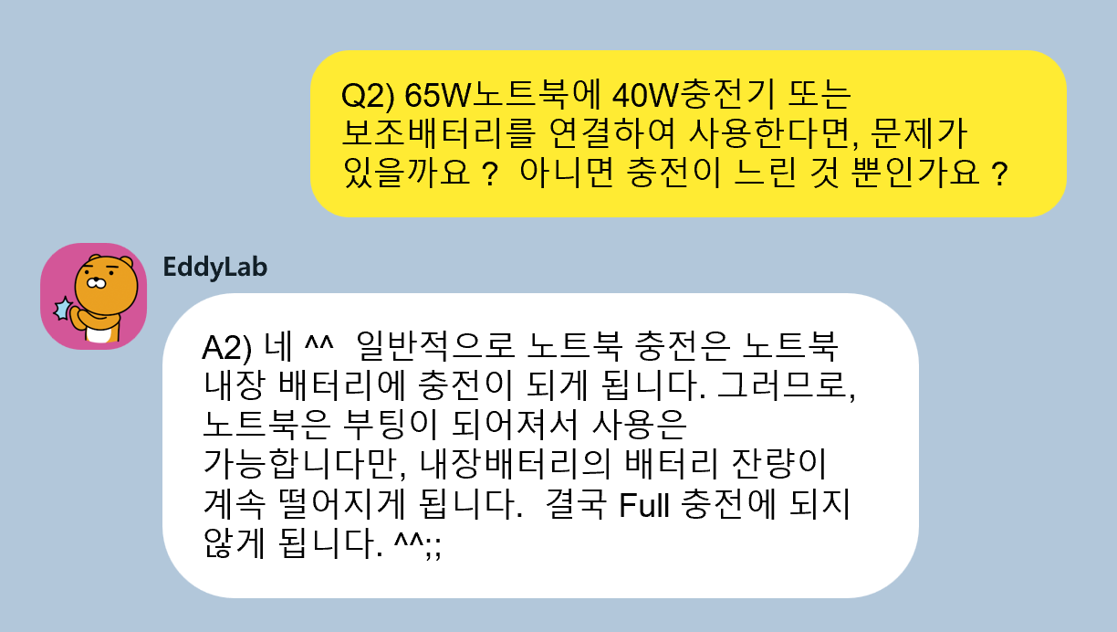 (주1) 반드시 충전기는 65W이상의 USB PD 충전기를 사용해야만 합니다.